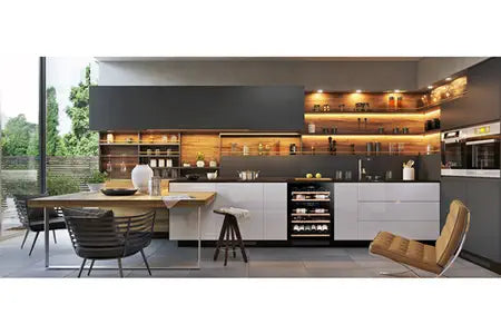 Cette cave est équipée des nouvelles clayettes multi-position pour mettre en avant vos plus belles bouteilles dans votre cuisine.