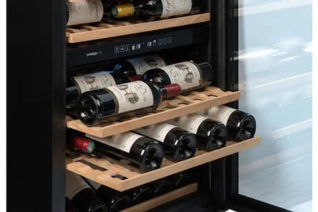 Cette cave est équipée d'amortisseurs qui absorbent les vibrations provenant de l'extérieur et de l'intérieur. Le vieillissement du vin n'est ainsi pas compromis !