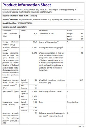 | Durée du programme éco - lavage et séchage |