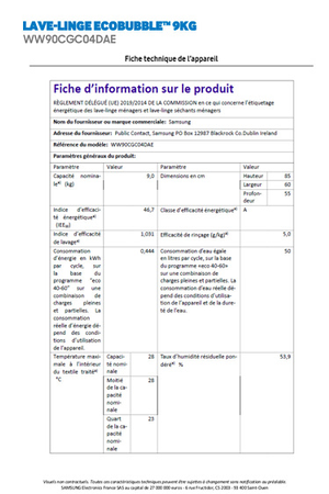 Surveillez et réduisez la consommation d'énergie de votre lave-linge. Ce mode vous permet de vérifier facilement la consommation d'énergie et d'estimer votre facture d'électricité. Il vous permet de faire jusqu’à 70% d’économies d’énergie sur vos cycles de lavage grâce à l’utilisation d’Ecobubble.