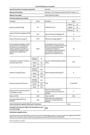 - Capacité 6 kg (tambour 42 L) - Classe énergétique A