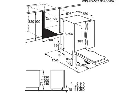 - L x H x P : 60 x 82 x 56 cm (encastrable)